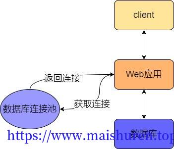 用池化技术解决了数据库连接复用的问题,系统虽然整体架构上没有变化,但是和数据库交互的过程有了变化,在 Web 工程和数据库之间增加了数据库连接池,减少了频繁创建连接的成本,性能上达到了提升。